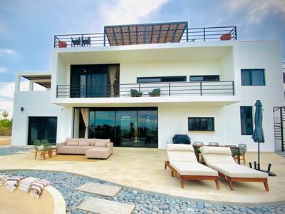Casa Principal is the main house on property, accessed by the main gate at the northeastern edge of our road with its own unique gate code. This home has an open floor plan with a large indoor/outdoor living room on the main floor, as well as a laundry room, a bathroom and one guest room which has slider door access to the main patio.